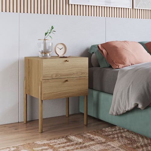 A Mesa de Cabeceira 2 Gavetas Oslo é confeccionada em MDP com acabamento BP e pés de madeira maciça. Móvel multifuncional, conta com duas gavetas para guardar acessórios, tornando o espaço mais organizado. Traz como característica um traço artesanal, suave e acolhedor. Com design escandinavo minimalista, remete em suas linhas retas a simplicidade, charme e funcionalidade que sua casa merece. Composta com uma paleta de cores neutras, onde refletem as paisagens nas quais a linha foi inspirada, tornando-se assim a opção ideal para um ambiente com toque sofisticado e ao mesmo tempo aconchegante. Acabamento da Gaveta: BP Altura dos Pés: 42,5 cm Ambiente Principal: Quarto codigo_ean: 7900288190550 Complexidade da Montagem: Baixa: pode ser montado por uma pessoa sozinha Cor: Hanover Cor do Produto: Hanover Cor Interna: Hanover Escala de Brilho: Fosco Escala de Brilho da Gaveta: Fosco Gaveta com Chave: Não Informações Complementares: As imagens são ilustrativas e as cores podem sofrer variações de tonalidade, conforme o ajuste de configuração do monitor, os objetos decorativos não estão inclusos. Itens Inclusos: 1 Mesa de Cabeceira, Kit Ferragens e Manual de Montagem Linha ou Coleção: Oslo Manual de Montagem e Instalação: https://product-hub-prd.madeiramadeira.com.br/421930605/documents/6fad587a-f930-4458-9732-da11e3ad3fdf3056975307217519950158035.pdf Marca: Artesano Material da Gaveta: MDP Material do Puxador da Gaveta: Poliestireno Material dos Pés: Eucalipto Material Principal: MDP Necessita Montagem: Sim Origem do Produto: Nacional Peso: 9,5 kg Peso Máximo por Gaveta: 1 kg Pet Friendly: Não Possui Espelho: Não Possui Possui Nichos: Não Possui Pés: 04 Possui Portas: Não Possui Prateleiras: Não Possui Vidro: Não Recomendações de Uso, Manutenção e Limpeza: Limpar utilizando apenas pano umedecido com água, nunca utilizar produtos químicos ou abrasivos, pois estes danificam o revestimento do móvel. Sapatas Niveladoras: Não Sistema de Montagem: Fixação é feita por parafusos, minifix, cavilhas e pregos, possibilitando a desmontagem do produto sem danificá-lo Suporta Até (kg): 7 kg Tipo de Corrediça da Gaveta: Metálica Simples Tipo de Puxador da Gaveta: Externo