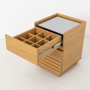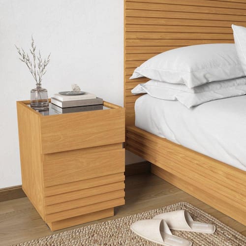 Mesa Cabeceira com visual moderno que vai deixar seu seu quarto muito mais elegante. Produto 100% MDF com corrediça telescópica e com um detalhe em vidro muito sofisticado. Depois conte-nos o que achou do produto nos comentários. Acabamento da Gaveta: Pintura UV Ambiente Principal: Quarto Complexidade da Montagem: Média: pode ser montado por mais de uma pessoa e/ou necessite de maior conhecimento para montagem Cor: Carvalho Cor do Produto: Carvalho Cor Interna: Carvalho Escala de Brilho: Fosco Escala de Brilho da Gaveta: Fosco Espessura do Vidro: 4 mm Gaveta com Chave: Não Itens Inclusos: 1 Mesa de Cabeceira, kit Ferragens e Manual de Montagem Linha ou Coleção: Samambaia Manual de Montagem e Instalação: https://cdn2.madeiramadeira.com.br/atributo/m-veis-robel/848577-modelo.pdf Material da Gaveta: MDF Material Principal: MDF Necessita Montagem: Sim Origem do Produto: Nacional Peso: 13,6 kg Peso Máximo por Gaveta: 4 kg Pet Friendly: Não Possui Espelho: Não Possui Possui Nichos: Não Possui Pés: Não Possui Portas: Não Possui Prateleiras: Não Possui Vidro: Sim Recomendações de Uso, Manutenção e Limpeza: Use um pano levemente umedecido com água, seguido de pano seco. Não utilize produtos químicos ou abrasivos. Sapatas Niveladoras: Não Sistema de Montagem: Parafuso, cavilha e minifix. Suporta Até (kg): 8 kg Tipo de Corrediça da Gaveta: Metálica Telescópica Tipo de Puxador da Gaveta: Embutido