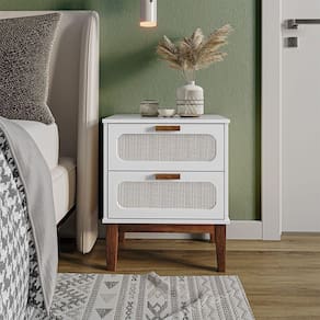 AS IMAGENS SÃO MERAMENTE ILUSTRATIVAS E PODEM SOFRER VARIAÇÕES DE COR E PEQUENOS DETALHES DE ACORDO COM O SEU MONITOR, ILUMINAÇÃO DO AMBIENTE E ATÉ MESMO A SUA PERCEPÇÃO De Cabeceira 2 Gavetas Santorini Branco 45 Cm Com Tela Indiana