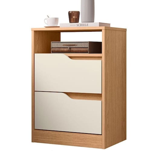 Mesa De Cabeceira 2 Gavetas Sara Freijó/off White Que tal uma mesa de cabeceira para sua cama box? Te interessou? Então checa só a mesa de cabeceira Sara! Ela possui 2 gavetas com corrediças telescópicas com amplo espaço e são feitos com os melhores materiais do mercado! Assim você tem mais estilo e espaço de armazenamento ao mesmo tempo! Aproveite esse e outros produtos incríveis só aqui na Casa Chick! Dimensões da Mesa de Cabeceira Sara: - Altura: 65 cm - Largura: 45 cm - Profundidade: 36 cm