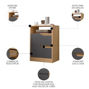 Além disso, também possui um nicho aberto, perfeito para exibir objetos decorativos ou armazenar livros e revistas. Já a combinação de cores adiciona um toque de elegância e sofisticação ao ambiente. Ah, e você ainda pode escolher a cor das vistas, pois conta com montagem flex. Seja para um quarto de casal ou quarto de solteiro, essa mesa lateral é uma adição versátil e funcional à sua decoração. Sua qualidade e design moderno garantem durabilidade e estilo por muitos anos.