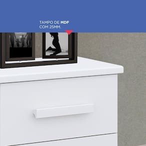 A mesa de cabeceira Zeus é moderno e pensado para garantir sofisticação ao ambiente. Produzido com tampo, fundo e frente de gavetas em MDF, possui 02 gavetas com corrediças telescópica e acabamento resistente com pintura UV. Ideal para ornar com a decoração do seu quarto. Acabamento da Gaveta: Pintura UV Ambiente Principal: Quarto Complexidade da Montagem: Baixa: pode ser montado por uma pessoa sozinha Cor: Branco Cor do Produto: Branco Cor Interna: Branco Escala de Brilho: Brilhante Gaveta com Chave: Não Itens Inclusos: 1 Mesa de Cabeceira, Kit Ferragens, Manual de Montagem Manual de Montagem e Instalação: https://product-hub-prd.madeiramadeira.com.br/873136/documents/155b8681-073e-4d6b-8df8-8f5fdb42bbc7560194criadonewathoscronus.pdf Material da Gaveta: MDF/MDP Material do Puxador da Gaveta: Madeira Maciça Material Principal: MDF/MDP Necessita Montagem: Sim Origem do Produto: Nacional Peso: 14.5 Peso Máximo por Gaveta: 7 Pet Friendly: Não Possui Espelho: Não Possui Possui Nichos: Não Possui Pés: Não Possui Portas: Não Possui Prateleiras: Não Possui Vidro: Não Recomendações de Uso, Manutenção e Limpeza: Pano levemente umedecido e depois passar um pano seco. Não utilizar produtos de limpeza abrasivos, nem esponjas de aço. Sapatas Niveladoras: Não Sistema de Montagem: Parafusos, Cavilha Suporta Até (kg): 30 Tipo de Corrediça da Gaveta: Metálica Telescópica Tipo de Puxador da Gaveta: Externo Ean: 7909903442326