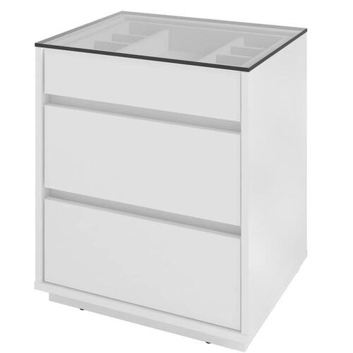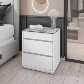 Estrutura elaborada em MDP de 25mm e 15mm, possui 03 gavetas, todas com corrediças telescópicas, o que garante mais praticidade no dia-a-dia, sua gaveta superior possui divisórias feitas em MDF, garantindo mais organização ao armazenar seus itens mais importantes. Possui também 03 travessas transversais em MDP de 15mm que garantem maior estabilidade e resistência à estrutura. Seu grande diferencial fica em sua parte superior, ele conta com tampo de vidro, o que permite ver seus objetos armazenados, além de agregar à ele um design único e moderno. Suporta até 30 kg distribuídos e sua pintura conta com acabamento Print Wood, patenteado e exclusivo Casa D, garantindo ao produto maior qualidade e durabilidade como nenhuma no mercado possui. Com sua versatilidade e estilo, ele irá acrescentar mais personalidade ao seu quarto. Este móvel chegará na sua casa separado em 02 volumes.
