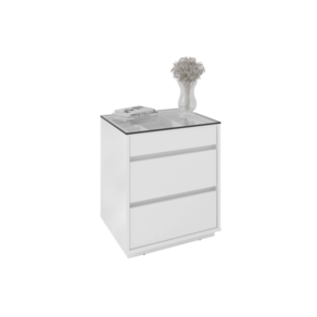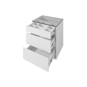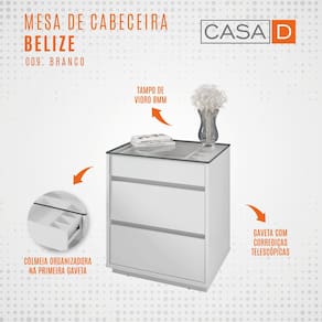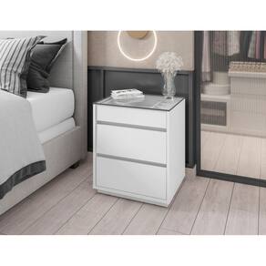 Mesa de Cabeceira 3 Gavetas com Organizador Tampo em Vidro Belize Branco - Rede Móveis