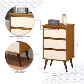Características da Mesa de Cabeceira 3 Gavetas com Pés Palito Woon: