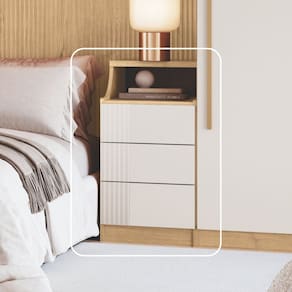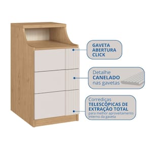O módulo Mesa de Cabeceira da linha Elegance com detalhe canelado nas gavetas é o complemento ideal para o seu guarda-roupa modulado. Com três gavetas de abertura por sistema click e corrediças telescópicas de extração total, oferece um ótimo aproveitamento interno e abertura suave. Acompanha ainda uma prática tomada para maior funcionalidade (furação e instalação não inclusas). Funcionalidade, conforto e estilo em cada detalhe. Acabamento da Gaveta: Pintura UV Ambiente Principal: Quarto codigo_ean: 7900288176301 Complexidade da Montagem: Média: pode ser montado por mais de uma pessoa e/ou necessite de maior conhecimento para montagem Cor: Angelin/Blanc Canelado Cor do Produto: Angelin/Blanc Canelado Escala de Brilho: Semi-Fosco Gaveta com Chave: Não Itens Inclusos: 1 Mesa de Cabeceira, Kit Ferragens e Manual de Montagem. Linha ou Coleção: Elegance Manual de Montagem e Instalação: https://product-hub-prd.madeiramadeira.com.br/316640782/documents/299ccf3e-f9b9-40e8-9e0d-63f202cd1e1a12888496531417459578633676.pdf Marca: Móveis Castro Material da Gaveta: MDP Material Principal: MDP Necessita Montagem: Sim Origem do Produto: Nacional Peso: 19,4 kg Peso Máximo por Gaveta: 4 kg Pet Friendly: Não Possui Espelho: Não Possui Possui Nichos: Não Possui Pés: Não Possui Portas: Não Possui Prateleiras: Não Recomendações de Uso, Manutenção e Limpeza: Limpar com pano levemente umedecido Sapatas Niveladoras: Não Sistema de Montagem: Parafuso, minifix e cavilha. Suporta Até (kg): 15 kg Tipo de Corrediça da Gaveta: Metálica Telescópica Tipo de Puxador da Gaveta: Não Possui - Abertura por Fecho Toque