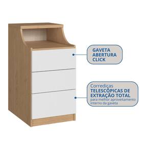 O módulo Mesa de Cabeceira da linha Elegance é o complemento ideal para o seu guarda-roupa modulado. Com três gavetas de abertura por sistema click e corrediças telescópicas de extração total, oferece um ótimo aproveitamento interno e abertura suave. Acompanha ainda uma prática tomada para maior funcionalidade (furação e instalação não inclusas). Funcionalidade, conforto e estilo em cada detalhe. Acabamento da Gaveta: Pintura UV Ambiente Principal: Quarto codigo_ean: 7900288136053 Complexidade da Montagem: Média: pode ser montado por mais de uma pessoa e/ou necessite de maior conhecimento para montagem Cor: Angelin|Blanc Cor do Produto: Angelin|Blanc Escala de Brilho: Semi-Fosco Gaveta com Chave: Não Itens Inclusos: 1 Mesa de Cabeceira, Kit Ferragens e Manual de Montagem. Linha ou Coleção: Elegance Manual de Montagem e Instalação: https://product-hub-prd.madeiramadeira.com.br/715310073/documents/308d1ecc-8bae-4d1a-8fe7-2f45dab8da962888496531417459578633676.pdf Marca: Móveis Castro Material da Gaveta: MDP Material Principal: MDP Necessita Montagem: Sim Origem do Produto: Nacional Peso: 19 kg Peso Máximo por Gaveta: 4 kg Pet Friendly: Não Possui Espelho: Não Possui Possui Nichos: Não Possui Pés: Não Possui Portas: Não Possui Prateleiras: Não Recomendações de Uso, Manutenção e Limpeza: Limpar com pano levemente umedecido Sapatas Niveladoras: Não Sistema de Montagem: Parafuso, minifix e cavilha. Suporta Até (kg): 15 kg Tipo de Corrediça da Gaveta: Metálica Telescópica Tipo de Puxador da Gaveta: Não Possui - Abertura por Fecho Toque