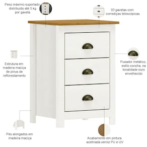 Peso máximo suportado distribuído até 5 kg por gaveta.