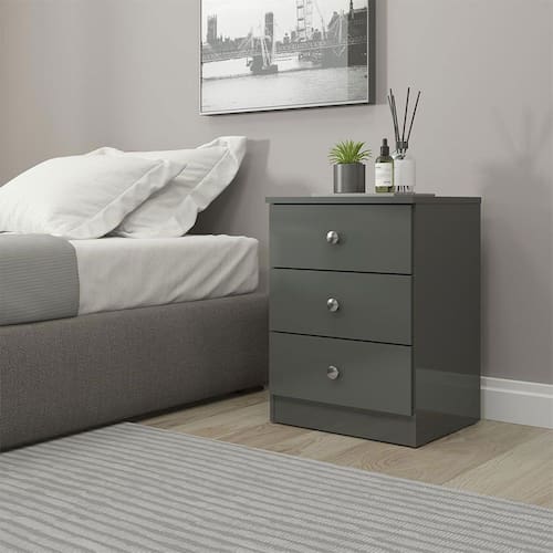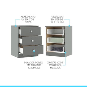 Caracter?sticas: Marca: Menu M?veis Material: Produzido em MDP de 12 e 15 mm Acabamento: UV Brilho Gavetas: 03 Corredi?a: Met?lica Puxadores: Tipo Ponto em Alum?nio Cromado