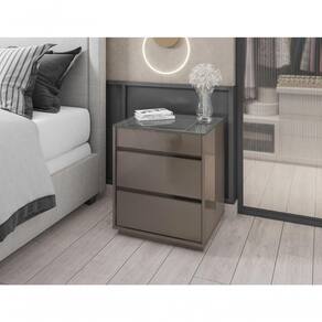 O Criado Serena é ideal para o seu quarto! Ele possui 3 gavetas sendo que a superior possui um organizador interno para joias, relógios, etc, feito em MDF. As gavetas possuem corrediças telescópicas. Tampo feito de vidro, base e laterais feitos em MDP de 25mm, e possui 3 travessas transversais em MDP de 15mm que garante maior estabilidade e resistência à estrutura.