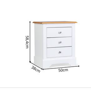 A Mesa de Cabeceira Louise com 3 Gavetas une elegância e praticidade em um design clássico com acabamento branco, que traz leveza e sofisticação ao ambiente. As gavetas amplas com puxadores metálicos são perfeitas para organizar objetos pessoais, enquanto o tampo em madeira maciça de pinus exibe sutis variações e desenhos naturais que realçam a beleza da peça.