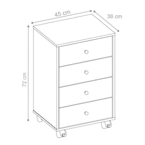 Além de suas quatro gavetas, ele ainda vem com um jogo de rodízios, facilitando assim o seu , se necessário!