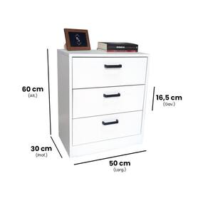 Mesa de Cabeceira Branca 50cm com 3 Gavetas - Enviada Montada