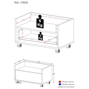 Dimensões do produto montado: Altura: 36cm | Largura: 60cm | Profundidade: 36cm *Você pode consultar as medidas internas na imagem técnica do produto.
