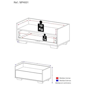 Dimensões do produto montado: Altura: 35cm | Largura: 80cm | Profundidade: 40cm *Você pode consultar as medidas internas na imagem técnica do produto.