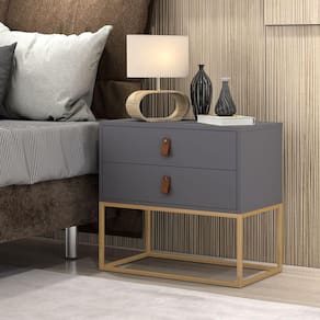 A Mesa de cabeceira possui os pés em ferro. As gavetas possuem corrediças telescópicas, o que dá maior qualidade, delicadeza e durabilidade ao produto e os puxadores em couro, somos pioneiros nessa tendencia que está bombando na europa.