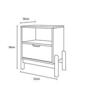 Estrutura elaborada em MDP de 25mm e 15mm. Gaveta com corrediças telescópicas. Pintura com acabamento Print Wood, patenteado e exclusivo Casa D, atóxico e anti mofo.