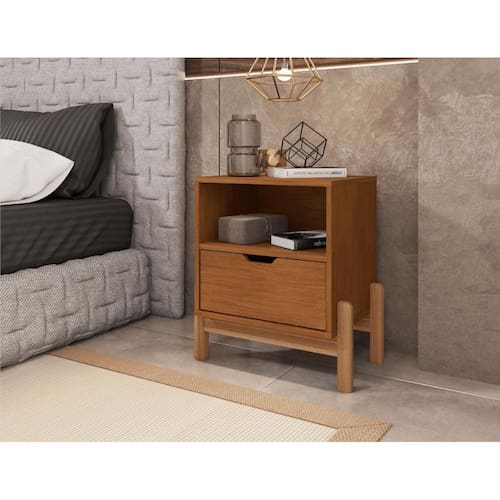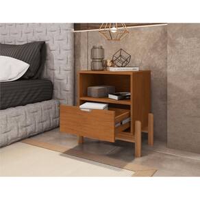 Mesa de Cabeceira Antares é ideal para deixar seu ambiente aconchegante e estiloso, com um design moderno e muito funcional, contém uma gaveta e um nicho com muito espaço para guardar seus pertences. Mesa de cabeceira com pés de madeira maciça, tornando-o ainda mais resistente. Acabamento de pintura UV. Frente de gaveta usinada.
