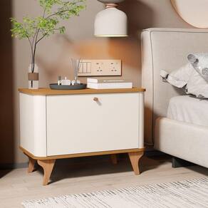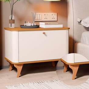 Mesa De Cabeceira Aruma Com Cantos Arredondados Com Divisória Off White Com Nature