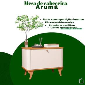Com design moderno e funcional, a Mesa de Cabeceira Arumã é a escolha ideal para quem deseja unir charme, praticidade e organização ao visual é marcado pelos cantos arredondados exclusivos da linha Arumã, que transmitem sofisticação e . O puxador metálico com acabamento refinado e os pés em madeira maciça garantem elegância, robustez e durabilidade ao porta com divisória interna bem planejada oferece espaço prático para armazenar objetos pessoais, mantendo tudo sempre à mão e organizado, sem comprometer a estética do ões:Altura: 56,0 cmLargura: 75,5 cmProfundidade: 40,5 cmObservações:- Cantos arredondados exclusivos da linha Arumã- Puxador metálico com acabamento refinado- Pés em madeira maciça, conferindo robustez e durabilidade- Porta com divisão interna para melhor aproveitamento- Visual clean que valoriza a decoração