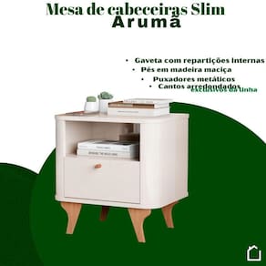 Mesa De Cabeceira Aruma Slim Com Cantos Arredondados Off White Com design moderno e funcional, a Mesa de Cabeceira Slim Arumã é ideal para quem busca elegância e praticidade em espaços cantos arredondados exclusivos da linha Arumã trazem um toque de sofisticação e . O puxador metálico com acabamento refinado e os pés em madeira maciça garantem charme, firmeza e porta com divisória interna oferece praticidade e um excelente aproveitamento do espaço, mantendo seus objetos pessoais sempre à mão e bem organizados, sem comprometer o visual leve do ões:Altura: 50,0 cmLargura: 45,0 cmProfundidade: 33,5 cmObservações:- Cantos arredondados exclusivos da linha Arumã- Puxador metálico com acabamento refinado- Pés em madeira maciça, oferecendo firmeza e durabilidade- Porta com divisão interna para melhor aproveitamento- Visual clean que valoriza o ambiente Marca: Não Informado