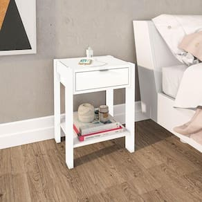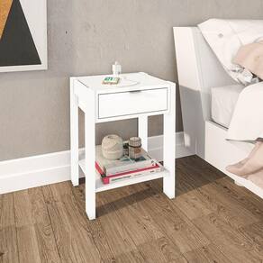 Mesa de Cabeçeira para Quarto Decorativa AZ1016 MDP Branco - Gran Belo Possui tomada na sua base, possui uma gaveta, estrutura em MDP, acabamento de excelente qualidade. Com designer contemporâneo, e linhas simétricas, a união de suas sobre cores m ao ambiente sensações de harmonia e elegância entre a decoração. Prática e cheio de estilo se destaca em qualquer tipo de ambiente.