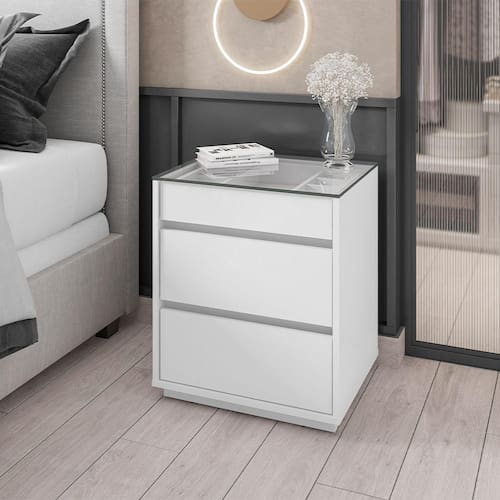 Prática e sofisticada, a Mesa de Cabeceira Belize conta com tampo de vidro temperado de 8mm, que traz leveza ao design. Possui gaveta com colmeia organizadora na ira gaveta, perfeita para pequenos itens, além de corrediças telescópicas, que garantem abertura suave e total.