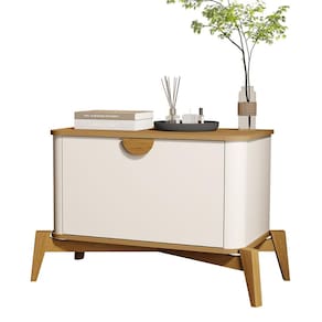 Mesa de Cabeceira Buriti com 1 Porta e Pés de Madeira Maciça - Off White