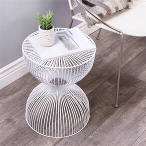 O acabamento branco adiciona profundidade, enquanto os espaços entre o fio de ferro permitem um design aberto. Características: Acabamento: branco Figura de ampulheta aberta Estilo moderno Especificações: Montagem necessária: Não Dimensões do produto: 14" L x 14" P x 17,5” H Peso do produto: 12 libras Capacidade de peso: 90 libras Material: ferroCor/acabamento: branco - Figura aberta em ampulheta - Estilo moderno