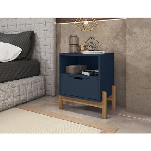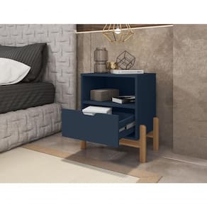 Mesa de Cabeceira Aurora é ideal para deixar seu ambiente aconchegante e estiloso, com um design moderno e muito funcional, contém uma gaveta e um nicho com muito espaço para guardar seus pertences. Mesa de cabeceira com pés de madeira maciça, tornando-o ainda mais resistente. Acabamento de pintura UV. Frente de gaveta usinada.