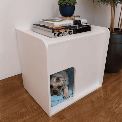 Sala de Estar: Pode ser usada como uma mesa lateral, proporcionando uma área extra para decoração e um canto aconchegante para seu cachorro.