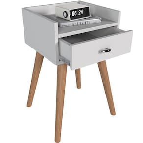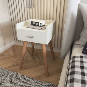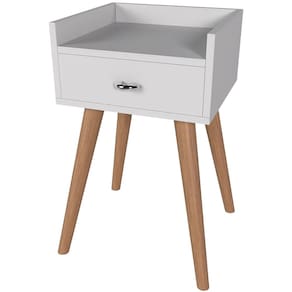 Com pés em madeira maciça estilo retrô, esta Mesa de Cabeceira é perfeita para as laterais da sua cama. Possui uma gaveta com amplo espaço interno e puxadores cromado.