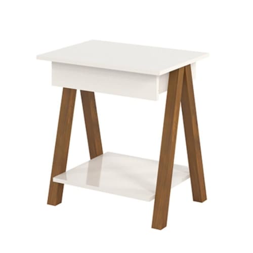 Além de sua estrutura ser em pinus 15 mm, Tampo em MDF, a Mesa de Cabeceira possui 1 Gaveta e 1 Prateleira.