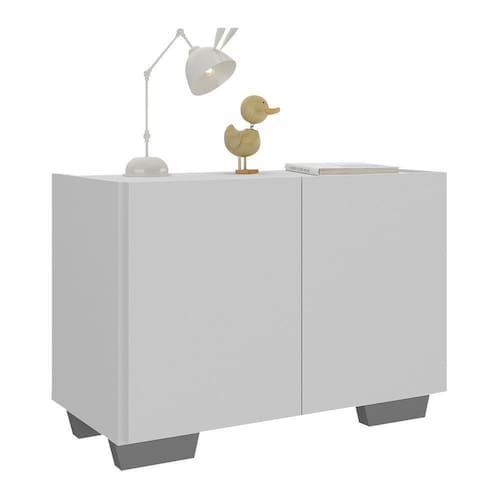 Mesa De Cabeceira Com Pés 2 Portas Multimóveis Mp4134 Branca/cinza Branco/cinza