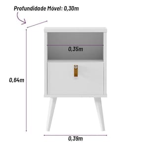 Mesa de Cabeceira com Pés Palito Bob 1 Gaveta e Nicho