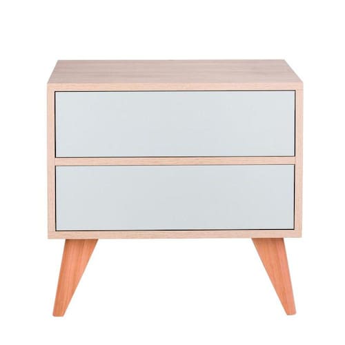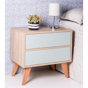 Mesa de Cabeceira Modelo Bréscia na cor Carvalho Treviso (Madeira Clara) e portas Verde Menta traz organização com estilo para o seu quarto. Possui lindos pés torneados em diagonal.