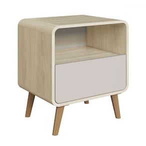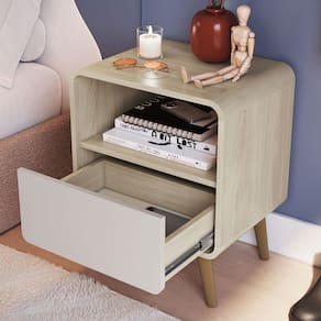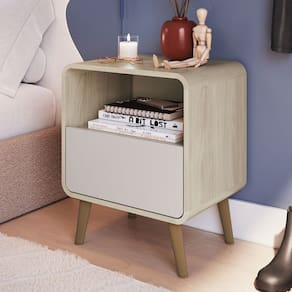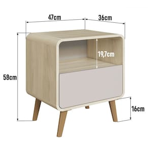 O(a) Mesa de Cabeceira Curve 1 Gaveta Carvalho Araguaia/Bege Dunas - Completa Industria é produzido em MDP na escala de brilho Fosco, e possui um grau de dificuldade de montagem: Fácil.