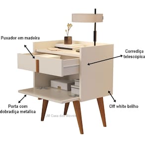 Mesa de cabeceira Davi 1188 estilo retrô, pés palito, embalado com caixa reforçada nas laterais para não ocorrer avaria no transporte.