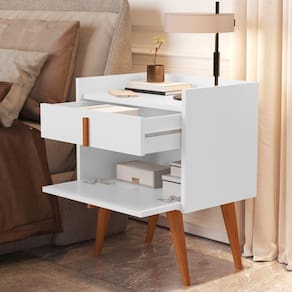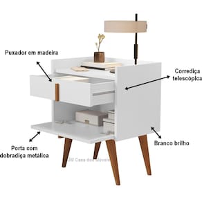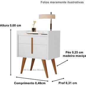 Mesa de cabeceira Davi 1188 estilo retrô, pés palito, embalado com caixa reforçada nas laterais para não ocorrer avaria no transporte.