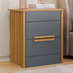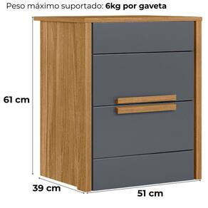 Mesa de Cabeceira Dhara, solução funcional para quartos com design moderno! Estrutura em MDP (15mm) com acabamento em pintura UV. Gavetas com puxadores em MDF, corrediças metálicas e sapatas niveladoras para maior praticidade no dia a dia. Este produto será entregue em 01 volume.