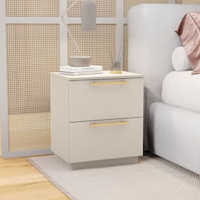 Características: Estrutura em MDP Pintura UV 02 Gavetas com corrediças telescópicas Puxadores com acabamento dourado.