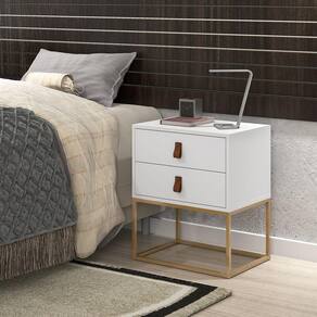 A Mesa de cabeceira possui os pés em ferro. As gavetas possuem corrediças telescópicas, o que dá maior qualidade, delicadeza e durabilidade ao produto e os puxadores em couro, somos pioneiros nessa tendencia que está bombando na europa.