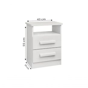 Mesa De Cabeceira Firenze 2 Gavetas Com Nicho - D' Doro Branco A Mesa de Cabeceira Firenze é perfeita para apoio ao lado da cama. Fabricada em 100 MDF, produzido com chapa de 15mm. Com duas gavetas que possuem corrediças telescópicas, perfeitas para organizar seus objetos pessoais e livros. Além de puxadores de madeira e com um perfeito nicho que adicionam um charme especial e sofisticado. Não perca a oportunidade de transformar seu espaço em um verdadeiro refúgio de estilo e conforto! Características: Produzido em 100 MDF; Puxadores de Madeira; Corrediça telescópica; Abertura total da gaveta; Produzido com chapa de 15mm;