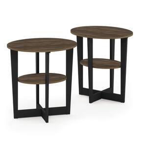 Furinno JAYA Mesa de cabeceira/mesa de cabeceira oval com extremidade lateral, pacote com 2, nogueira Columbia/Preto