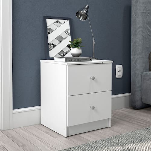 Características: Estrutura MDP Pintura UV Fosca 02 Gavetas com corrediças metálicas Puxadores em Plástico Peso suportado por Gaveta: 5kg