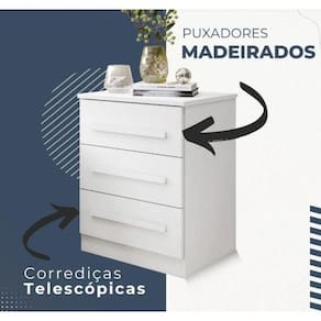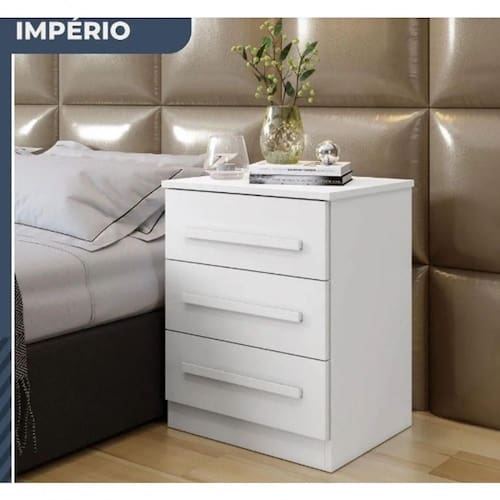 A mesa de cabeceira Império com design clean trás charme e elegância, possui 3 gavetas com corrediças telescópicas, deixando tudo bem organizado. Ótimo custo benefício.