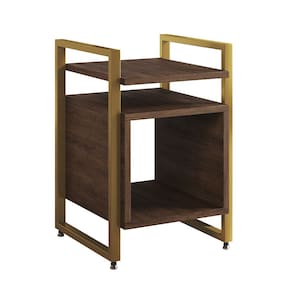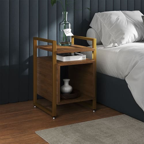 Mesa de Cabeceira Industrial Marrocos Ferro Dourado e Tampo Amêndoa - Marrom