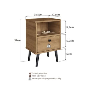 A Mesa de Cabeceira da Plasmobile, é a peça ideal para complementar a decoração do seu quarto, combina um estilo moderno e retrô, possui uma gaveta e um nicho, tem o espaço ideal para organizar as suas coisas. Acabamento da Gaveta: Finish Foil Acabamento da Prateleira: Finish Foil Acabamento dos Pés: Liso Altura dos Pés: 17 cm Ambiente Principal: Quarto Infantil codigo_ean: 7900288246684 Complexidade da Montagem: Média: pode ser montado por mais de uma pessoa e/ou necessite de maior conhecimento para montagem Cor: Mel Cor do Produto: Mel Cor Flex: Não Cor Interna: Mel Escala de Brilho: Fosco Escala de Brilho da Gaveta: Fosco Escala de Brilho da Prateleira: Fosco Gaveta com Chave: Não Itens Inclusos: 1 Mesa de Cabeceira, Kit Ferragem e Manual de Montagem Linha ou Coleção: Quarto Manual de Montagem e Instalação: https://product-hub-prd.madeiramadeira.com.br/822437558/documents/48dfc4a7-11fa-4173-a4ef-7be2bf4b53193251300522517592604870409.pdf Marca: Plasmóbile Material da Gaveta: MDP Material da Prateleira: MDP Material do Puxador da Gaveta: ABS Material dos Pés: Plástico Material Principal: MDP modular: Não Montagem Flex: Não Necessita Montagem: Sim Origem do Produto: Nacional Pés Reguláveis: Não Peso: 7,8 kg Peso Máximo por Gaveta: 4 kg Peso Máximo por Prateleira: 8 kg Pet Friendly: Não Possui Espelho: Não Possui Nichos: 01 Possui Pés: 04 Possui Portas: Não Possui Prateleiras: 01 Possui Vidro: Não Quantidade de Nichos: 01 Recomendações de Uso, Manutenção e Limpeza: Para a limpeza do móvel utilizar pano levemente umedecido Sapatas Niveladoras: Não Sistema de Montagem: Parafuso e Cavilhas Suporta Até (kg): 15 kg Tipo de Corrediça da Gaveta: Metálica Simples Tipo de Puxador da Gaveta: Externo Marca: Não Informado