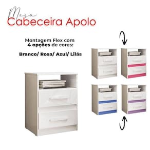 Começou a montar o quartinho do seu filho? Então apresentamos para você esta bela mesa de cabeceira da linha Apolo. Com design moderno e delicado, possui um nicho aberto para acomodar os itens ou acessórios do seu filho e duas gavetas espaçosas com corrediças metálicas, garantindo um deslizamento suave. Os puxadores em MDF dá um toque especial no acabamento. O maior diferencial é a opção de escolher quatro combinações de cores na hora da montagem: branco/ rosa/ azul/ lilás. Fabricado pela Moval, é desenvolvido em MDP de qualidade, sendo perfeito para compor o quarto das crianças com praticidade, charme e versatilidade, aproveitem!