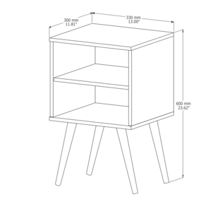 Resistente e com alta durabilidade Produzido em MDF/MDP e pés palito estilo retrô Dimensões do produto montado: Altura: 60 cm Largura: 33 cm Profundidade: 30 cm